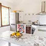 W apartamencie The Roman Bridge-Parking-Wifi-2 Min From The Sea leży również pełnowymiarowa kuchnia z zapleczem kuchennym.